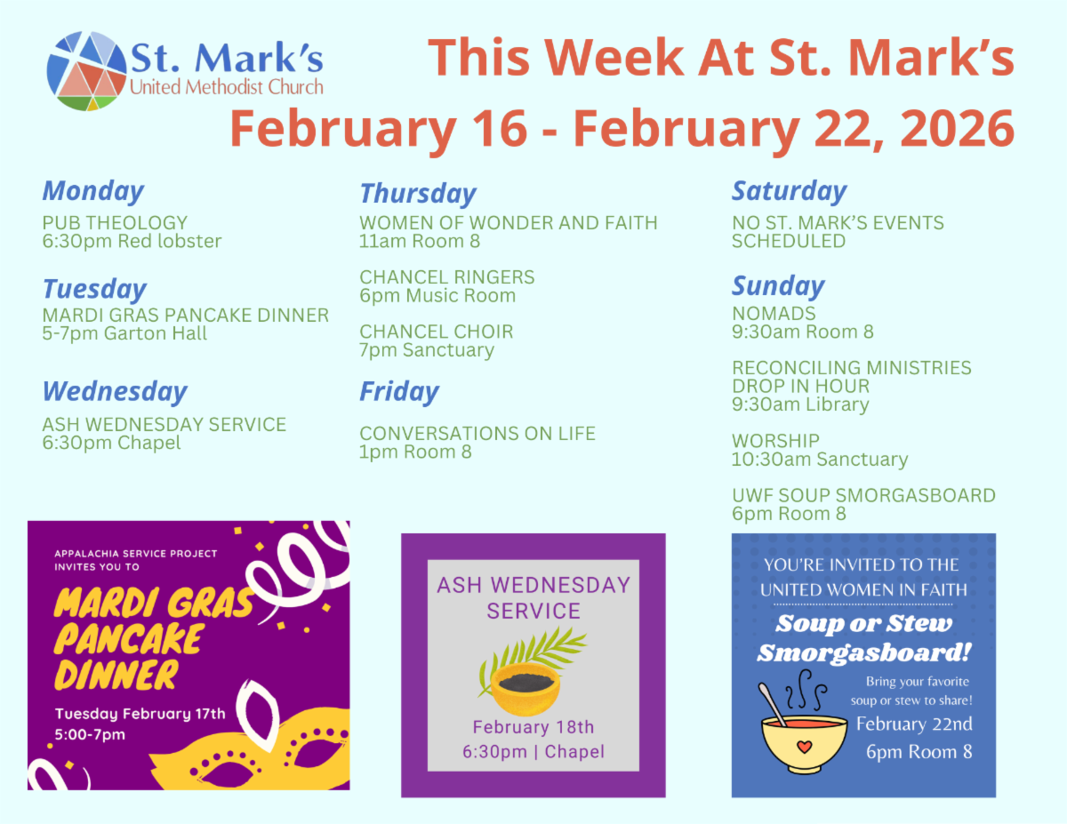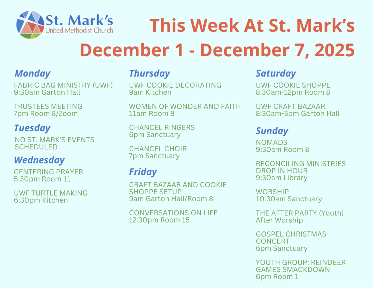 If you would like to receive weekly reminders for events at St. Mark’s, subscribe to our newsletter email service by clicking the button below.