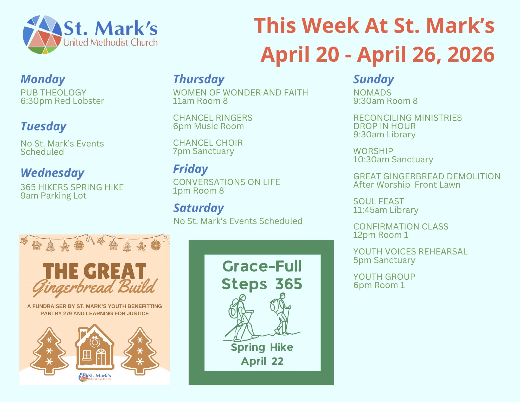 If you have been part of the St. Mark’s community for decades, or will be joining us for the first time, we look forward to connecting with you on the livestream at 10:30am. Please click the button below to learn more about the sermon.